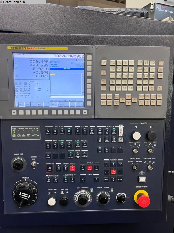 CNC- Drehmaschine mit angetriebenen Werkzeugen, Y- Achse und Gegenspindel - 3- Backenfutter Ø 210 mm Hauptspindel - 3- Backenfutter Ø 135 mm Gegenspindel - Späneförderer - Teilefänger + Box in der Tür - Werkzeug- Messarm - 3 + 3 angetriebene Werkzeughalter - mechanischer Teileauswerfer Gegenspindel - div. starre Werkzeughalter - Signallampe mit 3 Farben - 6 bar Kühlmitteldruck Zubehör: - 6 Angetriebene Werkzeuge, 3x axial, 3x radial. - 1x Futter für Hauptspindel SEOAM CGH-08, Futter-Ø 210 mm, Spindelnase A2-6 - 1x Futter für Subspindel SEOAM CAH-05, Futter-Ø 135 mm, mit mechanischen Auswerfer - 1 Kurzstangenlader LNS QLS 80 S2 |