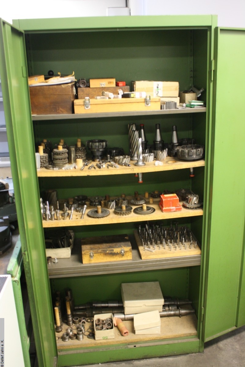 Universal milling machine Berlett FE1-10, year of manufacture 1989 Very robust tool milling machine with many accessories. Various vices. Manual rotary table Various holders and milling cutters Coolant tank Full tool cabinet with milling cutters etc. |