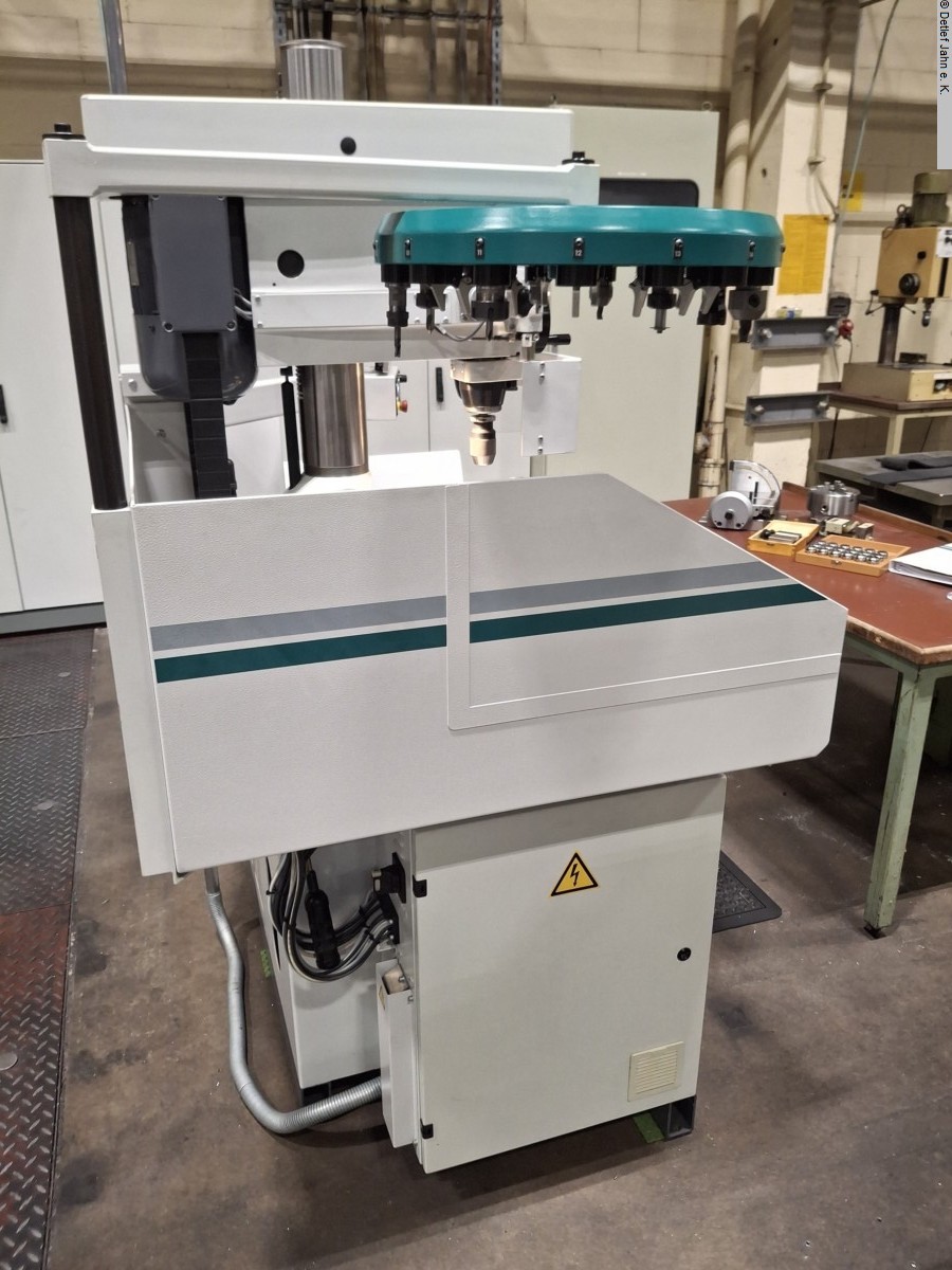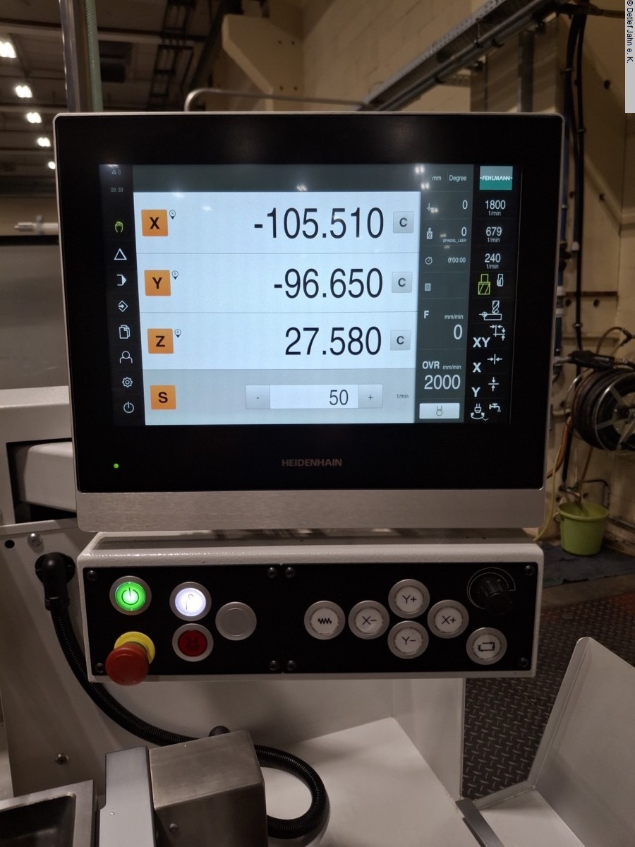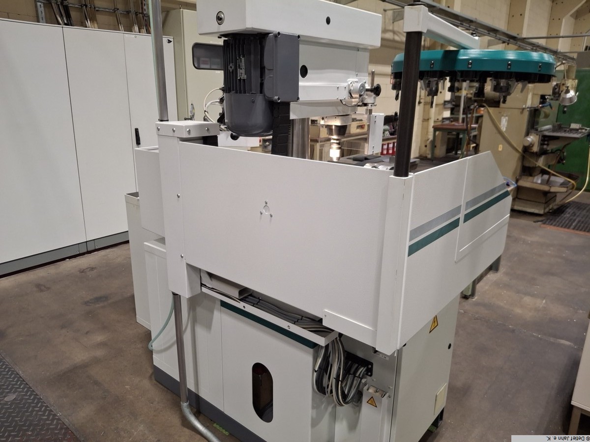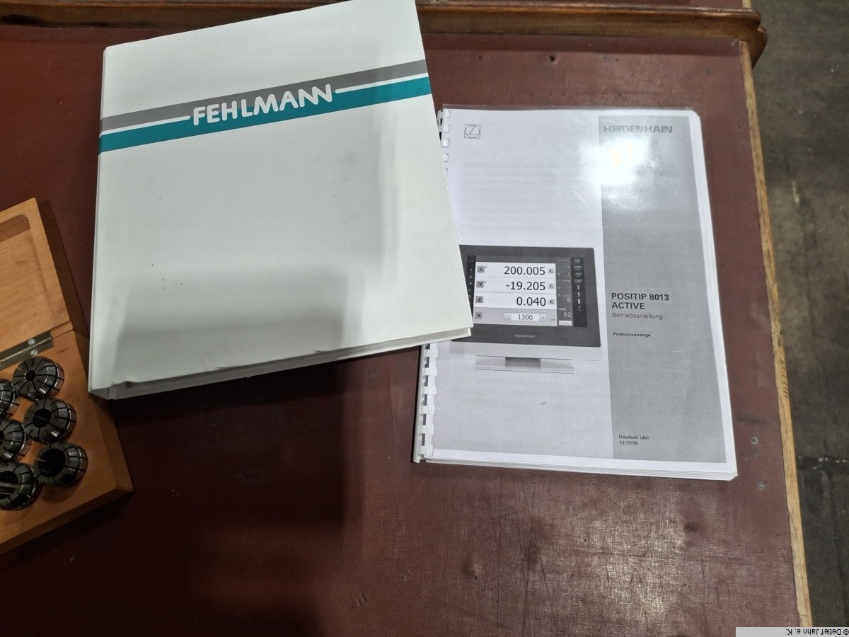 FEHLMANN Picomax 21M precision milling, drilling and coordinate machine The machine has been used very little and is in top condition. The accessories enable almost any form of machining of individual parts, except for contours. Year of manufacture: 2017 Operating hours: 2060 Connection 400V/50Hz Space requirement Width/depth/height 1700x1350x2000 Machine - Heidenhain Positip 8013 Active with touchscreen - Electronic, infinitely variable spindle speed control 50-6300 rpm - Power 2.9 kW, max. 40 Nm - Feed 0-2000 mm/min manually controllable and programmable - Weight approx. 950 kg - SF 32 quick-change tool system - Right/left thread cutting - LED lighting - Adjustment ranges: 450 mm (column), 110 mm (quill) - Adjustable stop for quill - Machine base with built-in tool cabinet with storage for spindle tools - Fine depth adjustment Z-axis via handwheel - KS 323 M coordinate table for manual and automatic positioning - Direct measuring system in X and Y, travel distances X/Y 450 x 260 Accessories - Fehlmann sine table - Fehlmann part setting device, detent adjustable from 15 to 120 degrees, any intermediate angle possible - Röhm Dmr 140 chuck with 40 mm passage for part setting - ER32 collet holder incl. 18 collets for part setting - Allmatic 160 mm vice with integrated stop system (stop pin in jaws) - 4/6-sided partial device for collets 5c (without collets) - Röhm Dmr 160 turning chuck for clamping in vice - Tool magazine with swivel arm for 15 tools SF32 - Tool clamping device SF32 - 20 quick-change inserts SF 32 (collets, cutter heads, milling cutters) - 18 collets ER 16 - 35 collets ER 25 - Edge finder and insert SF32 with fine lever gauge for alignment - Preparation for electronic probe - Various milling tools up to Dmr 20 - Technical documentation in electronic and paper form - Heidenhain operating and programming instructions Positip 8013 - Machine is without coolant system Control functions - Manual and semi-automatic machining (manual, MDI, NC, Z-axis manual) - Storage of speeds, tool data, zero points and programmes - Processing of linear sets, hole patterns, rectangular pockets, no circular pockets (PTP control) - Printer output, file import and export Translated with DeepL.com (free version) |